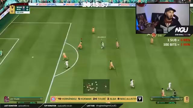 01:54:18Der Streamer demonstriert anhand konkreter Spielszenen unrealistische KI-Reaktionen, bei denen Verteidiger trotz falscher Positionierung und physikalischer Limitationen extrem schnell den Ball zurückerobern. Besonders hervor gehoben wird eine Szene, in der ein träger Innenverteidiger (Campbell) binnen Millisekunden eine große Distanz überbrückt, sowie ein Vergleich zwischen Pinas Vorwärtsbewegung und der rückwärts gerichteten Super-Reaktion eines Gegners. Dies wird als Beispiel für die seit Team of the Season typischen, aber bereits früh in dieser Saison auftretenden Balancing-Probleme kritisiert.