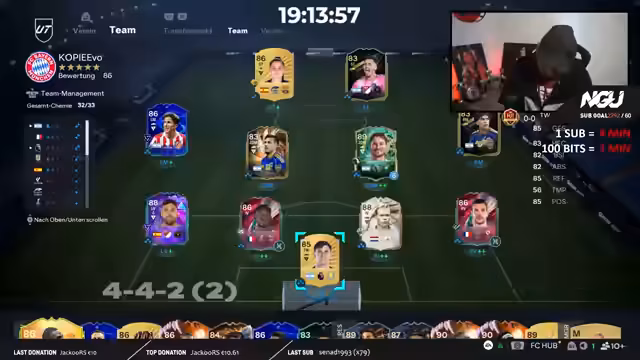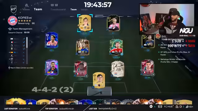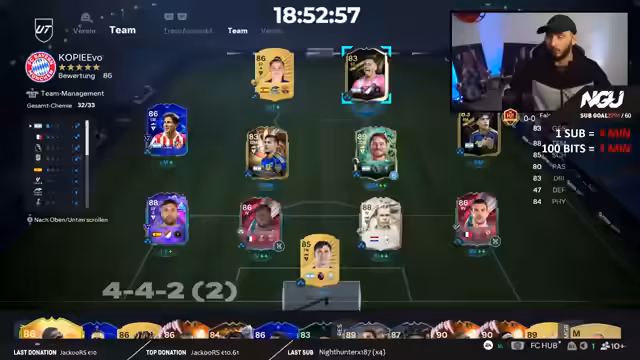 04:27:20Die Silber-Maradona-Karte in FIFA wird als vielversprechend für Evolutionen gelobt, insbesondere wegen der Playstyles wie Technical Plus und Press Proven. Der Streamer plant, die Karte weiter auszubauen und benötigt dafür noch etwa 30 Siege. Neben Maradona wird auch die Entwicklung von Spielern wie Hullit auf anderen Accounts diskutiert.