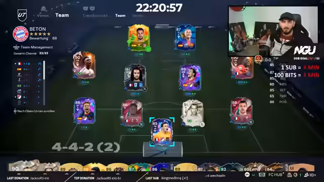 01:27:38Der Streamer erklärt, dass er sechs argentinische Spieler in seinem Team hat, um 13 Siege für die Evolution von Maradona zu sammeln. Maradona soll in dieser FIFA-Saison besser in die Meta passen als im Vorjahr, besonders aufgrund seiner technischen Fähigkeiten und Beweglichkeit. Er plant, Maradona auf seinem Hauptaccount zu evolvieren und spricht auch über potenzielle andere Spieler wie Güler oder Holit, die ebenfalls für Evolutionen in Frage kommen. Der Fokus liegt darauf, Maradona durch gezielte Evos zu einer Endgame-Karte auszubauen, während er auf seinem RTG-Account andere Spieler priorisiert.