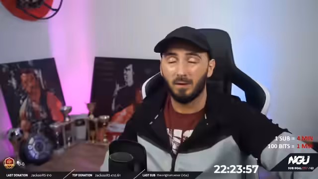 00:09:09Mirza begrüßt die Zuschauer am 19. Tag des NGU Subathons. Er gibt ein Gesundheitsupdate: Trotz anhaltender Erkältung und leichten Einschränkungen fühlt er sich besser als am Vortag. Er betont seine Entschlossenheit, täglich zu streamen, trotz der körperlichen Belastung durch den langen Subathon. Mirza erwähnt, dass die verbleibende Streamzeit durch frühere Eskalationen der Community auf etwa 22,5 Stunden gestiegen ist und voraussichtlich bis Montag reichen wird. Zudem kündigt er an, dass der nächste Stream wegen einer Familienfeier erst um 20 Uhr beginnt.
