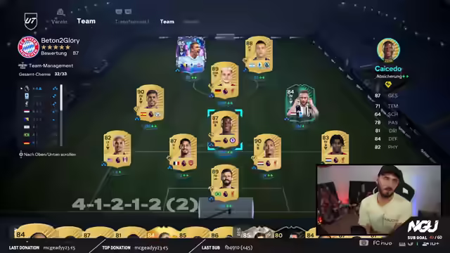 01:21:23Der Streamer analysiert das aktuelle Spiel gegen einen starken Gegner und hebt dessen offensive Gefährlichkeit und defensive Stabilität hervor. Er lobt die Fähigkeit des Gegners, durch L2-Abuse mit Gjökeres Druck auszuüben, und passt seine eigene Strategie an, um dem entgegenzuwirken. Er erkennt, dass Wirz in seiner aktuellen Position nicht optimal eingesetzt ist und überlegt, ihn stattdessen auf der Position von Totti einzusetzen, um sein Potenzial besser auszuschöpfen. Er erklärt, wie er den Dragback einsetzt, um den Gegner auszuspielen, und betont, dass dies seine stärkste Waffe ist. Er analysiert seinen eigenen Verteidigungsstil und erkennt, dass der Gegner diesen kopiert, was zeigt, dass er eine gute Strategie verfolgt. Er erklärt, wie er durch schnelles Passspiel und Dreieckspässe Lücken in der gegnerischen Abwehr findet und diese ausnutzt. Er betont die Bedeutung von Vertrauen in die eigene Defensive und erklärt, wie er durch ruhiges und kontrolliertes Spiel den Ball erobert und Konter einleitet. Er analysiert die Stärken und Schwächen seines Teams und überlegt, wie er seine Aufstellung optimieren kann, um noch erfolgreicher zu sein.