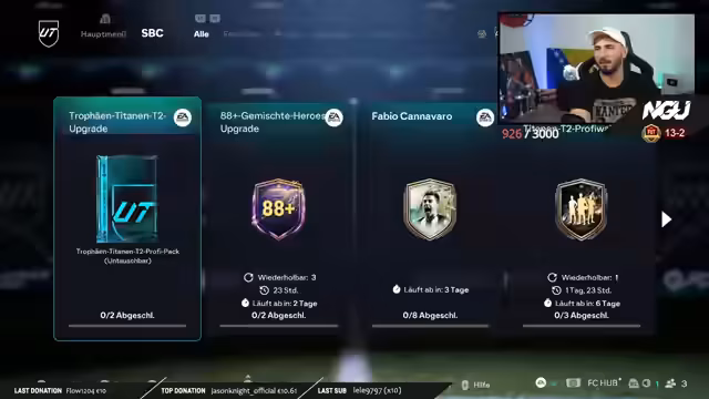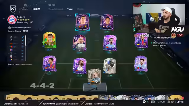 01:43:23Der Streamer beginnt mit dem Spiel 'Gauntlet: Ultimatives Duell' um Packs für ein großes Pack-Opening am Freitag zu erspielen. Er möchte ein starkes Team für Weekend League Spiele aufbauen und hat das Ziel, 15-0 mit seinem Bosnien-Team zu erreichen. Er erwähnt auch, dass er 'The Last of Us: Teil 2' später am Abend auf dem zweithöchsten Schwierigkeitsgrad spielen wird.