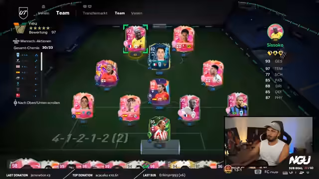 00:28:05Der Streamer ist in einem unterdurchschnittlichen Zustand und beginnt mit einer 1-2 Niederlage in der Weekend League. Er schildert seine Frustration über seine eigene, schlampige Anfangsphase, in der er gegen scheinbar schwächere Gegner verliert und das Gefühl hat, seine Spieler seien langsam. Im Gegensatz dazu berichtet er von einer beeindruckenden Statistik der letzten sechs Weekend Leagues, in denen er sechsmal einstellige Niederlagen und hohe Siege wie 13-1 und sogar 15-0 erzielt hat.