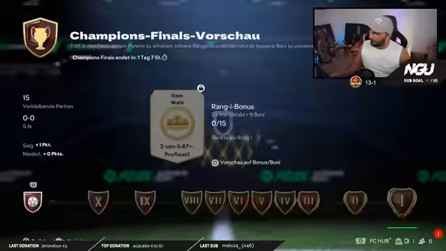 00:13:25Der Stream beginnt mit einer Begrüßung der Zuschauer und der Ankündigung, dass heute die zweite Weekend League mit dem RTG Account gespielt wird. Der Streamer stellt sein geiles und besonderes Squad vor, mit dem er in die Weekend League gehen wird, und erwähnt, dass er in der Vergangenheit bereits konstant gute Ergebnisse wie 13-1 oder sogar 15-0 erreicht hat. Die Stimmung ist motiviert und der Fokus liegt auf dem bevorstehenden FIFA 26 Start.