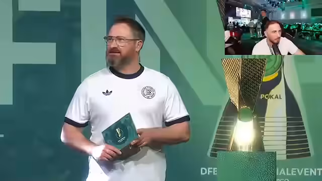 00:00:25Der Streamer begrüßt die Zuschauer aus der Halle des DFB-ePokalfinales und stellt die anwesenden Creator vor, darunter Nick Lugi, Furky und Pharo, sowie die Tisis, die alle live vor Ort sind und ab 16 Uhr ihre Streams starten werden. Erwähnt wird, dass es sich um das DFB-E-Pokalfinale handelt, das von Ergo unterstützt wird. Zudem werden Hannes Cannes, Marvin und Donny aus der Crew begrüßt, die ebenfalls anwesend sind. Die Zuschauer werden nach ihrer Meinung zum Sound gefragt und es wird die allgemeine Atmosphäre des Events gelobt, inklusive der Bühne und des Gameplays, das aufgegriffen wird. Es wird auf die Partnerschaft hingewiesen und die Vorfreude auf die bevorstehenden Spiele und die packenden Begegnungen betont, insbesondere nach dem überraschenden Ausscheiden von Leipzig am Vortag.