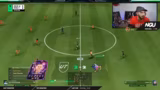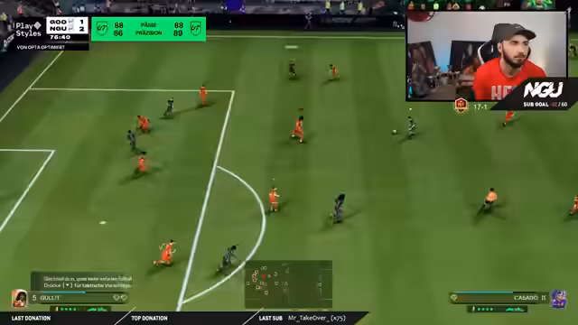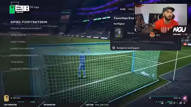 00:44:03Das erste Spiel der Fantasy-Liga beginnt, und der Streamer erkennt schnell, dass der Gegner sehr passiv spielt. Trotz klarer Chancen und besserer Spielkontrolle des Streamers, wie z.B. durch auffällige Ballannahmen der gegnerischen CPU, gelingt es ihm nicht, ein Tor zu schießen. Der Gegner nutzt eine einzige Chance durch eine unglückliche, spielerische Fehlentscheidung des Streamers zur Führung. Die Partie endet nach Verlängerung unglücklich mit einer Niederlage, was beim Streamer große Frustration und das Gefühl eines ungerechten Ausgangs hervorruft.