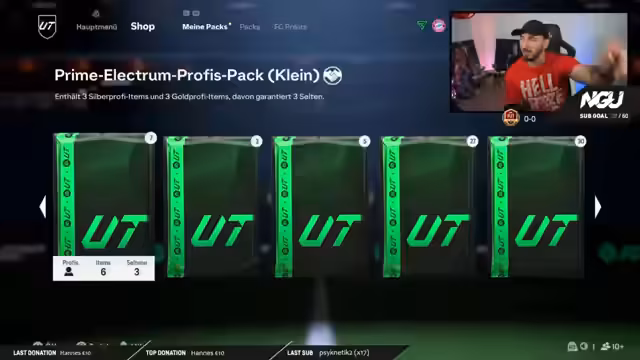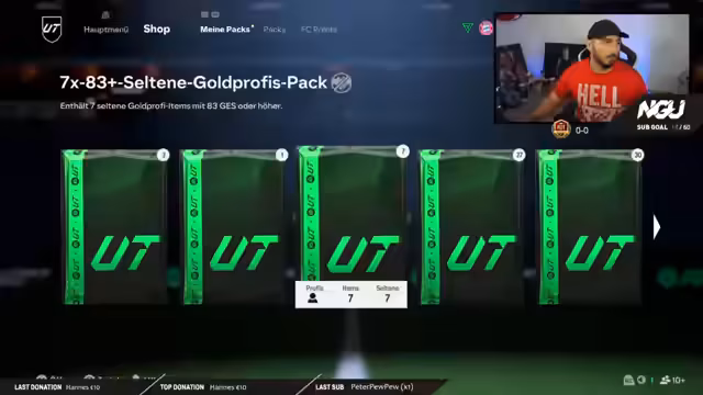 01:44:33Der Streamer beginnt das Futties Pack Opening mit einem 5x84 Plus Pack. Er äußert sich anfangs skeptisch zu den angegebenen Tiers der Packs. Es werden mehrere kleinere Packs geöffnet, darunter zwei 3x84 Plus Packs. Währenddessen spricht der Streamer über seine aktuelle Abwehrreihe mit Saliba, Puyol und Maicon und lobt Puyol für seine spielerischen Eigenschaften. Sein Hauptziel für diese Session bleibt das Ziehen der R9 Karte, die er in den kommenden Tagen anstrebt.