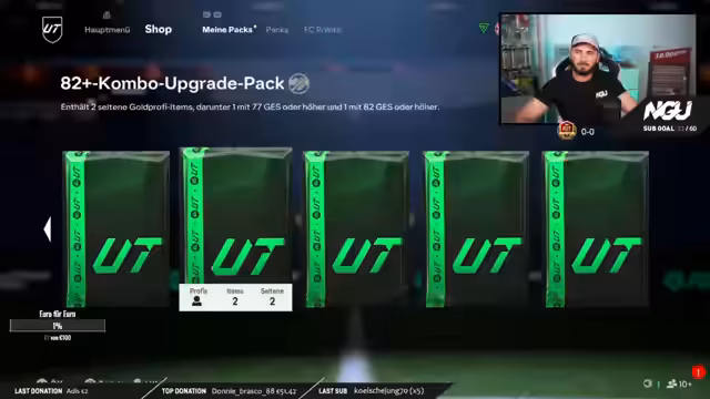 02:12:15Der Streamer öffnet ein 88 Plus gemischtes Icon Duo Pack, zieht aber nur den 91er Siko, was er als Flop bezeichnet, da er Hierro bereits hat und Siko in besserer Version besitzt. Anschließend öffnet er ein komplettes 1189 Plus Prisma Pack und wettet mit seiner Community, ob er einen Spieler im Wert von über 1.000.000 Coins ziehen wird. Die Mehrheit der Zuschauer glaubt daran. Er öffnet das Pack, zieht aber erneut einen spanischen Innenverteidiger, was er als Enttäuschung empfindet. Das Ergebnis des Packs ist insgesamt schlecht, was er darauf zurückführt, dass sein EA-Account durch Shop-Packs negativ beeinflusst wird. Er rät davon ab, Shop-Packs zu kaufen und stattdessen auf erspielte Packs und SBCs zu setzen. Die Wette geht verloren, da kein Spieler im Wert von über 1.000.000 Coins gezogen wird. Trotz des Pechs gibt er nicht auf und plant, weitere Packs zu öffnen, jedoch keine Shop-Packs mehr. Er öffnet 80 Plus Player Picks und wettet erneut mit der Community, ob er aus diesen fünf Picks einen Food Birthday Spieler ziehen wird.