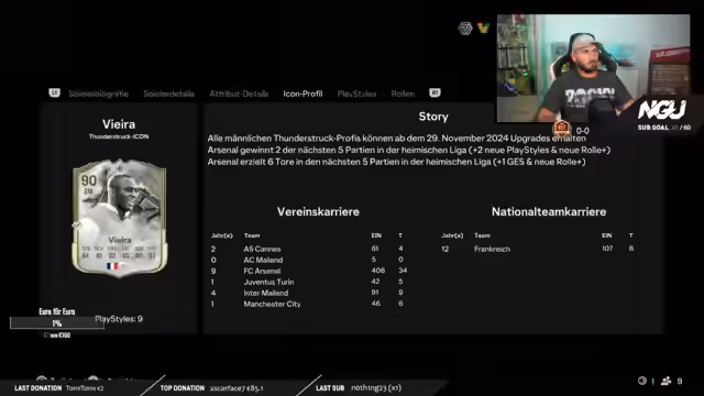 10:23:59Der Streamer analysiert verschiedene Spielvarianten und das Verhalten gegnerischer Teams. Er stellt fest, dass gut abgestimmte Teams oft auf Trivelas ausweichen, wenn sie defensiv unter Druck geraten. Seine eigene Strategie umfasst das Bewegen des Balls, X-Pässe und das Ausnutzen von Schwächen gegnerischer Verteidiger. Spieler wie Maldini werden als Schwachstelle identifiziert, während Kombinationen mit Spielern wie Vieira und Kelly als besonders effektiv erachtet werden. Die Diskussion zeigt die tiefe taktische Analyse der Spielmechaniken.