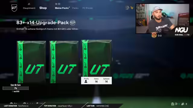 00:14:39Der 12-Stunden-Stream beginnt mit dem Begrüßung der Community und Ankündigung des Fantasy-Events. Der Streamer plant ein umfangreiches Pack Opening mit verschiedenen Packarten, darunter kleine und große Packs mit 20er- und 14er-Ratings. Es besteht ein Ziel von 150 Subs für einen weiteren 12-Stunden-Stream, wobei das Event zwei Wochen läuft. Der Streamer plant, neben dem Pack Opening auch gemeinsam mit der Community zu zocken.