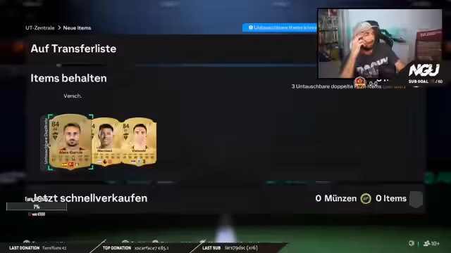 02:16:17Stream konzentriert sich auf das Öffnen von Monster Fantasy Packs mit dem Ziel, Spieler für SBCs zu erhalten. Der Streamer stellt fest, dass sein Lager voll wird und er strategisch 83er und 82er Spieler loswerden muss, um Platz für hochbewertete Spieler zu schaffen. Er kritisiert, dass es zu viele Duplikate gibt, und betont, dass er nur noch 84er und höher mitnimmt, da diese sinnvoller für sein Team sind.