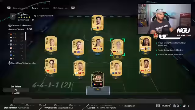00:25:55Der Streamer präsentiert seine Evo-Strategien, darunter die Entscheidung, bestimmte Spieler wie Cristiano und Joel Lindo zunächst nicht sofort zu evolutionieren, um auf bessere Evos zu warten. Es werden verschiedene Spieler wie Tabakovic und Dzeko erwähnt, die in bestimmte Evos eingebaut werden könnten. Der Streamer plant mit einer 4-2-4 Aufstellung zu spielen und zeigt sein aktuelles RTG-Team.