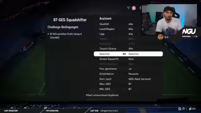 04:25:21Der Streamer spricht über seine Erfahrungen in der Weekend League und die Herausforderungen, die sich beim Spielen ergeben. Er diskutiert verschiedene Spieleroptionen für seine Teamzusammenstellung und Evolutionen, insbesondere bei Verteidigern. Er zeigt sich verärgert über den Wertverlust bestimmter Spielerkarten und äußert sich zugleich optimistisch über die Entwicklung neuer Evos, die er nach dem Urlaub testen möchte. Die Diskussion umfasst auch Spieltaktiken und die Wahl der passenden Spieler für verschiedene Positionen.