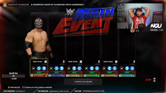03:58:38Der Streamer kündigt an, dass er nun WWE zocken wird und morgen geht es mit Dream Chasers Team 2 und neuen Evos weiter. Er testet die Server des neuen WWE 2K25 Spiels, da er eine eigene Liga mit Titel-Qualifiern und Titel-Matches hat, die aber nur bei stabilen Servern funktionieren. Er fordert seine Kollegen Bergio, Killer und Rami auf, dem Stream beizutreten. Der Streamer erinnert sich an FIFA 17 Zeiten, in denen er mit Spielern wie Bale, Cristiano Ronaldo, Pogba und Kanté gespielt und 40-0 Siege geholt hat. Er erklärt die Bedeutung seines Abschiedsgrußes "Tschüss bis dann" mit der Schulter, der eine Hommage an Carsten Schäfer (WWE-Kommentator) und Stefan Raab ist. Er hat den Gruß im Laufe der Zeit weiterentwickelt und ein Zwinkern hinzugefügt. Der Streamer geht mit seinen Kollegen in ein WWE-Match mit Entrance. Er zeigt seinen Charakter Dark Miyagi, eine düstere Version von Miyagi, der sich nach den schlechten Servern von 2K24 in seine Höhle zurückgezogen und trainiert hat. Er betont den Realismus des Spiels und vergleicht seinen Charakter mit sich selbst. Der Streamer erklärt die Regeln des Five-Way-Matches und die Bedeutung der Energie-, Ausdauer- und Finisher-Leisten. Er demonstriert die verschiedenen Angriffs- und Kontermöglichkeiten im Spiel. Er lobt die Serverstabilität bis 3 Uhr morgens und erinnert sich an einen 12-Stunden-Stream, in dem sie aufgrund von Serverproblemen in 3 Stunden nur 2 Matches spielen konnten. Der Streamer kommentiert die Charaktere seiner Mitspieler und deren Moves.