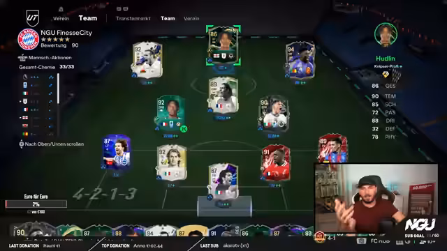 00:12:21Der Stream beginnt mit einer herzlichen Begrüßung der Zuschauer und der Ankündigung, dass in dieser Weekend League Isaac Touré, der mit 2,06 Meter größte Innenverteidiger im Spiel, getestet wird. Touré ergänzt Kyle Hardlin, den größten Stürmer mit ebenfalls 2,06 Meter, im Team. Es wird erwähnt, dass Touré noch nicht vollständig evolutioniert ist und die restlichen Evolutions im Laufe der Weekend League abgeschlossen werden sollen. Der Streamer bedankt sich bei BabelTV und Psychopaths für ihre Unterstützung durch Resubs und Prime-Abonnements. Ein Zuschauer berichtet von einem glücklichen Pack-Pull, was zu einer Diskussion über Pack-Luck und den sogenannten 'Gwin-Fluch' führt, von dem viele Zuschauer betroffen sind. Es wird festgestellt, dass der Streamer und Exhale Gaming lange Zeit Pech beim Ziehen von Karten hatten, sich dies aber nun geändert hat, da Exhale plötzlich Glück hat. Abschließend wird der Plan für die kommende Woche vorgestellt, der vier Streams innerhalb von fünf Tagen umfasst, darunter ein 12-Stunden-Stream, zwei Weekend League-Sessions und ein großes Pack Opening am Donnerstag, bei dem der Streamer fleißig spart und zwei 5x89+-Packs verlost.