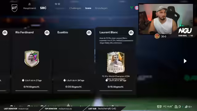 00:39:59Der Stream widmet sich dem packen von Spielkarten und der Erledigung von SBCs (Squad Building Challenges). Er kommentiert sein Pech beim Ziehen wertvoller Spieler und den vollen Speicher für SBCs. Er demonstriert einen effizienten Workflow, bei dem er den Speicher nach dem Erhaltdatum sortiert, um Low-Rated-Spieler schnell abzustoßen und Platz für neue Aktionen zu schaffen. Dies ist ein zentraler Teil des Grinds für das Main-Team.