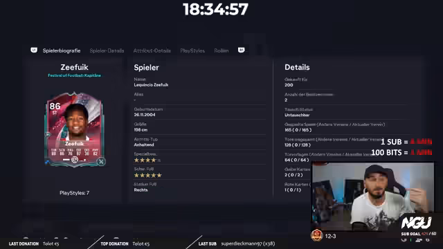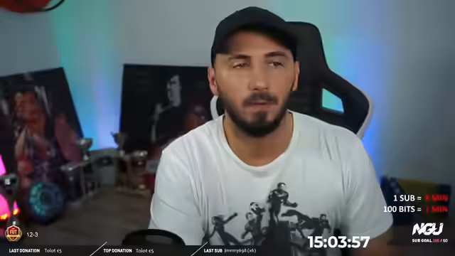 00:08:19Der Streamer begrüßt das Publikum zum zweiten Tag des NGU Subathons um 18 Uhr und erklärt die Grundregeln: Ein Timer läuft, der jeden Sub um vier Minuten und 100 Bits um eine Minute verlängert. Das Ziel ist, jeden Tag von 18 Uhr bis 3 Uhr morgens zu streamen, solange der Timer nicht bei null ist. Der Streamer nennt geplante Inhalte wie Pack Openings, Real Talks, Reaktionen, Giveaways und Teambewertungen und betont, dass dies ein besonderer, intensiver Stream-Monat werden soll.
