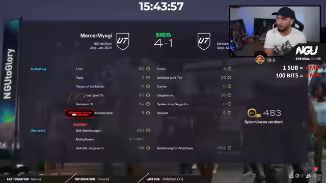 06:20:30Ein Hauptaugenmerk liegt auf dem laufenden NGU-Subathon, der den Streamer täglich von 18 bis 3 Uhr morgens live zeigt. Der Timer, der die verbleibende Streamdauer anzeigt, kann von der Community durch Subs und andere Interaktionen erhöht werden. Jeder Sub fügt vier Minuten zur Gesamtzeit hinzu. Der Streamer plant, den Timer nicht täglich zurückzusetzen, um den Fortschritt der gesamten Community zu verfolgen und gemeinsam zu feiern, wie lange der Marathon insgesamt andauern wird. Ein weiteres Highlight ist die tägliche Teambewertung, bei der er Squads der Zuschauer analysiert und Feedback gibt.