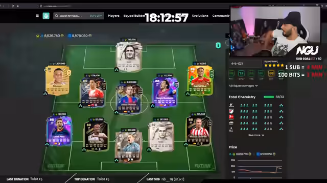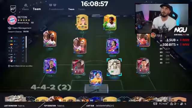 04:30:27Im Stream finden sich zahlreiche Teambewertungen für verschiedene Zuschauer. Der Streamer analysiert die vorgelegten Formationen und gibt präzise Tipps zur Aufstellung, Spieler-Upgrades und zur Anpassung an die aktuelle Meta. Dabei werden gezielt Stärken und Schwächen der jeweiligen Teams, insbesondere im Mittelfeld und in der Defensive, beleuchtet und konkrete Verbesserungsvorschläge gemacht, wie der Tausch von Koundé in die Mitte oder die Integration von Mariona für mehr Beweglichkeit.