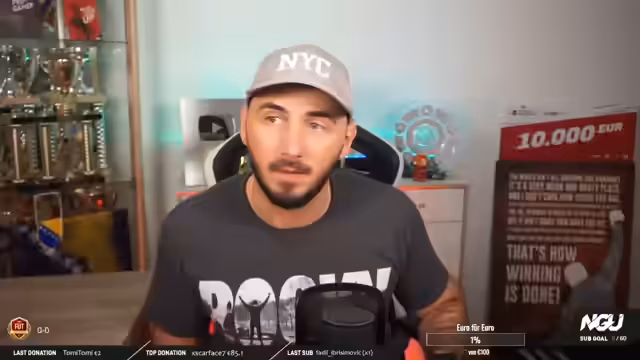 01:36:04Nach einer demoralisierenden Niederlage gegen einen Gegner, der laut Streamer nur 30% Ballbesitz hatte und durch Glück und "Bunkern" gewann, bricht eine Phase der Frustration los. Der Streamer fühlt sich von EA "verarscht", da die CPU zu Gunsten solcher Spielertypen verstärkt wurde. Als Konsequenz kündigt er einen radikalen Taktikwechsel an: Er werde nun nicht mehr kombinieren, sondern ausschließlich Trivela-Schüsse aus der Distanz abfeuern, um solchen Gegnern entgegenzuwirken und aus Frustration heraus Tore zu schießen.