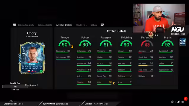 00:27:42Nach dramatischer Ankündigung wird das neueste Meisterwerk präsentiert: Finlay Burns. Mit herausragenden Werten in allen relevanten Bereichen wie Sprinten, Passen, Dribbling, Abwehr und Physis sowie einer Größe von 1,96 Metern gilt er als der ausgewogenste und kraftvollste Allrounder, den der Streamer bisher erschaffen hat. Seine Playstyles wie Aerial Plus und Rakete machen ihn vielseitig einsetzbar und zu einem potenziellen Schlüsselspieler.