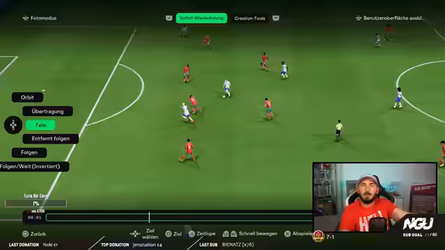 01:41:41Nach einem Pause kommt der Streamer auf die bisherige Woche zurück. Nach anfänglichen Schwierigkeiten und einem unglücklich verlorenen Spiel gelang es, sich mit konzentriertem Spiel und gezielten Flanken auf 5-1 zu verbessern. Es wird die Einführung eines neuen Coachs erwähnt, um die Chemie zu testen. Der Support der Community wird aktiv um Like-Gaben für den YouTube-Stream gebeten, um den Algorithmus zu unterstützen.