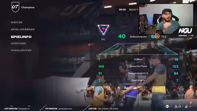03:15:22Nach einer längeren Pause, in der der Streamer Zeit mit seiner Familie verbracht hat, ist er wieder voller Energie und motiviert, die Spiele zu absolvieren. Das Ziel ist es, alle verbleibenden Games, egal ob Sieg oder Niederlage, durchzuziehen und keine Zeit zu verschwenden. Trotz einer unglücklichen und frustrierenden 7:6-Niederlage bleibt der Fokus darauf, sich zu erholen und Gas zu geben, um die täglichen Ziele zu erreichen.