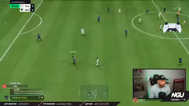 02:52:09Nachdem die Gegner kompakter gestaffelt stehen, testet der Streamer die 4-2-2-2-Formation auf Balance-Einstellung und stellt fest, dass diese besser funktioniert. Er gibt einen entscheidenden Tipp zur Zielen: Trivela- und Finesse-Schüsse sollten immer mit Time-Finish ausgeführt werden, während normale Vollspannschüsse im Strafraum ohne Zeitstempel bessere Erfolge erzielen. Eine neue, von ihm erlernte Spieltechnik wird vorgestellt, bei der aus der zweiten Reihe ein L1-X-Pass in die Tiefe gespielt wird, um die CPU zu überlisten.