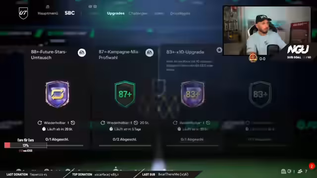 00:22:18Neben dem Gameplay wird auch das Trading diskutiert. Der Streamer kauft den Cristiano Ronaldo 88 auf beiden Konten für insgesamt 6 Millionen Münzen. Er begründet dies damit, dass er von einer baldigen, starken 88er Evolution für diese Karte ausgeht und darin eine sichere Investition sieht. Er ist überzeugt, dass der Wert der Karte dann durch die Decke gehen wird. Es handelt sich hierbei um eine bewusste, riskante Handelsstrategie, die er als "Trading King" betont.