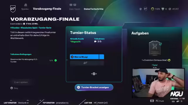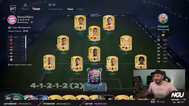 01:10:09Es wird diskutiert, wie der Drag-Back funktioniert, und Tipps werden gegeben. Der Streamer spricht über die Dauer des Streams und bedankt sich für Follows. Es folgt ein Walkout mit Alaba, der jedoch keine krasse Karte hat. Der Streamer feuert Pac-Fanatic für das Halbfinale vom Finalturnier an und fragt, wer das Turnier bereits gewonnen hat. Es werden weitere Packs geöffnet, darunter 2x75er Packs und 5x Premier League Packs. Fernandes wird gezogen und als okay bewertet. Der Streamer zeigt seinen Taktik-Code und bedankt sich für Subs. Ein 82+ Pack wird geöffnet und Bastoni wird gezogen, der eine gute Verteidigung hat. Der Streamer ist enttäuscht von den fehlenden Playstyles. Günther Sieg wird als preis-leistungstechnisch bester ZDM gelobt.