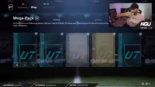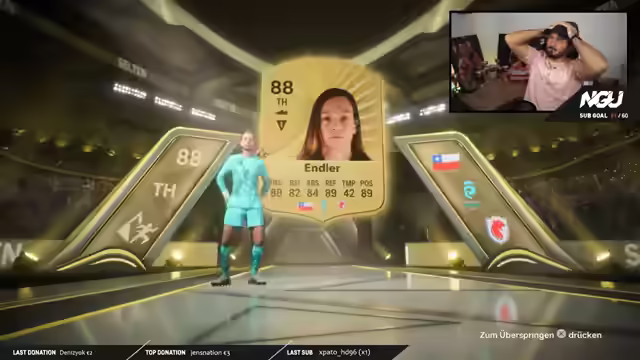 01:26:08Der Streamer freut sich über die erreichten 200 Likes auf YouTube und bedankt sich bei den Zuschauern für die Unterstützung. Er kündigt ein Zickzack-Dribbling-Tutorial für den nächsten Tag an und bittet um Interaktion auf YouTube. Er verweist auf seine Insta- und Facebook-Stories für weitere Tipps und Updates. Es werden weitere Packs geöffnet, darunter 10x75+ Packs, die jedoch keine guten Ergebnisse bringen. Der Streamer öffnet weitere Packs und ist enttäuscht von den Ergebnissen. Er zieht eine Team of the Week Spielerin, die ihn auslacht. Der Streamer wechselt zum RTG-Account in der Hoffnung auf besseres Pack Luck. Er zeigt seine Division 3 Rewards, die jedoch auch schlecht sind. Er freut sich über die erreichten 55 Subs und kündigt einen 12-Stunden-Bomber-Stream bei 150 Subs an.