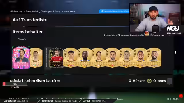 00:26:54In einem Zeitdruck wird mit der Vorbereitung der täglichen SBCs (Special Birthday Challenges) begonnen. Der Streamer ist bemüht, schnell 14 SBCs auf verschiedenen Accounts zu absolvieren, um rechtzeitig um 19 Uhr mit den Pack Openings starten zu können. Das Geschehen ist geprägt von einer hektischen und stressigen Atmosphäre, in der er sich oft selbst im Zeitstress befindet und schnell handeln muss.