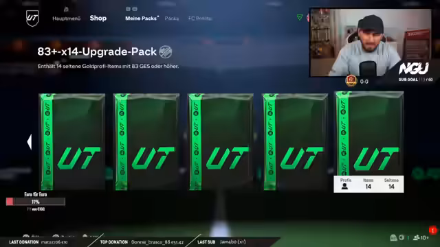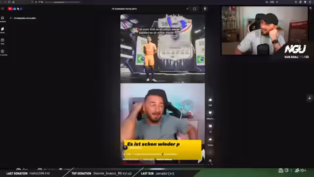 01:57:05Das Pack-Opening beginnt mit kleineren Paketen, wobei der Streamer erstmals Walkouts zieht. Der Höhepunkt ist jedoch der Erinnerung an einen seiner größten Pulls: den legendären R9 aus FIFA 20. Diese Erinnerung löst eine große Begeisterung aus und lässt ihn über den nostalgischen Kauf des 95er R9 nachdenken. Parallel dazu startet er interaktive Wetten für das Publikum, bei denen die Zuschauer mit Kanalpunkten auf Eigenschaften der nächsten gezogenen Spieler, wie die Größe oder die Fähigkeiten, wetten können.