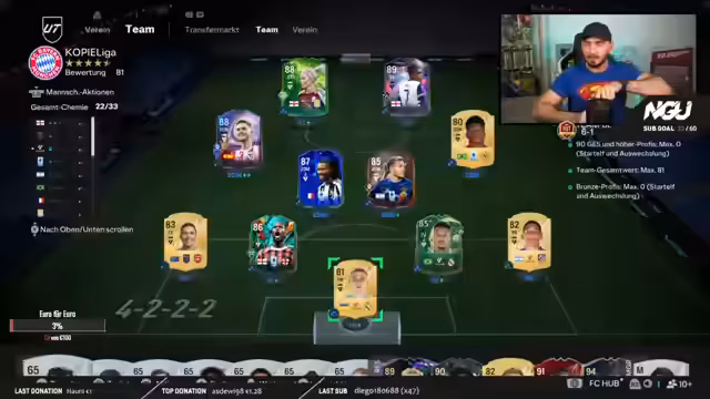 02:33:19Es wird über das aktuelle Team gesprochen, das trotz hoher Investitionen in Spieler wie Cristiano Ronaldo (88er Version) noch nicht als endgültiges 'Main-Team' angesehen wird. Es sind etwa vier Millionen Münzen investiert worden. Der Fokus liegt auf der Weiterentwicklung von Spielern durch 'Evos' in den nächsten sieben Tagen, wobei ein besonderes Augenmerk auf 'Karl hat Lin' liegt, der zu einem 'Todesmonster' werden soll. Es wird betont, dass das Team kontinuierlich verbessert wird und bald ein noch stärkeres Team entstehen soll. Bis dahin wird entspannt gespielt und auf weitere 'Evos' gewartet. Es wird auch überlegt, James ins Team zu holen, um Mitrita zu ersetzen, da James die Halbflügel-Fähigkeit besitzt, die perfekt passt. Abschließend wird die Bedeutung von Unterstützung hervorgehoben und auf die Möglichkeit hingewiesen, durch Amazon Prime ein kostenloses Abo abzuschließen, um Vorteile wie Werbefreiheit zu erhalten und die Community sowie den Streamer zu unterstützen.