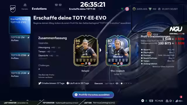 Während des 45. Subathon-Tages konzentriert sich der Fokus auf die Öffnung mehrerer Team of the Year-Packs in FC Ultimate Team. Die geöffneten Karten zeigen außergewöhnliche Leistungssteigerungen und seltene Spezialversionen, die für bemerkenswerte Reaktionen sorgen. Die Pack-Inhalte generieren kontinuierlich Spannung, da jede neue Karte unerwartete Möglichkeiten für das Team eröffnet. Die Veranstaltung zeigt eine steigende Dynamik bei der Bewertung der Spielerkarten und deren Einfluss auf die zukünftige Teamzusammenstellung.