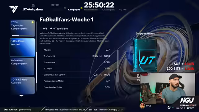 Im Rahmen des 45. Tages eines NGU Subathons wurde eine große Anzahl an TOTY-Packs geöffnet. Die Aktion wurde gemeinsam mit Sarah Strong durchgeführt, die als "Pack Luck Queen" betitelt wird. Währenddessen traten massive Serverprobleme auf, die das Opening unterbrachen. Ein humorvoller Zwischenfall ereignete sich, als ein Staubsauger den Streamer traf. Für den Folgetag wurde ein weiteres großes Pack-Opening angekündigt.