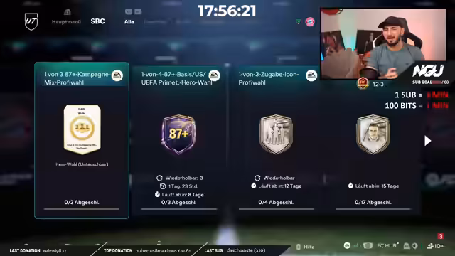 01:31:09Der Stream beginnt mit einer aufregenden Pack-Opening-Session, bei der sofort starke Karten gezogen werden. Besonders hervorgehoben wird die Ibrahimovic-Karte mit dem Tiki-Taka Playstyle, die als 'Endgame' und 'beste Karte' bezeichnet wird. Die Diskussion kreist um die Bewertung dieser Karte und deren Preis-Leistungs-Verhältnis im Vergleich zu anderen Top-Karten wie Daniel Larusso. Ein zentrales Thema ist die Suche nach Schnäppchen, insbesondere nach der Pina-Karte für unter 3 Millionen Münzen, und die Herausforderungen beim 'Snipen' aufgrund von Server-Problemen und technischen Verzögerungen.