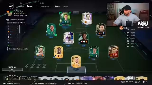 00:16:43Heute steht die 12 Games Fantasy Liga auf dem RTG Account im Fokus. Der Streamer wird das Squad nach den gegebenen Restrictions aufbauen und alle 12 Spiele bestreiten, um möglichst viele Siege und Belohnungen zu holen. Dies ist das Hauptziel des Streams, und die Zuschauer werden aktiv in den Team-Aufbau eingebunden.
