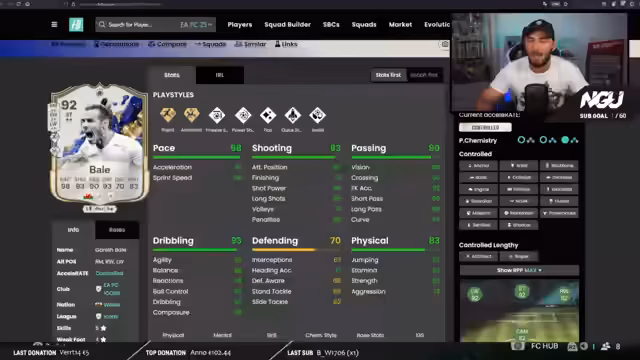 04:18:53Der Streamer testet Gareth Bale in verschiedenen Spielmodi und analysiert seine Stärken und Schwächen. Er spricht über taktische Anpassungen, wie die Umstellung auf 4-2-3-1, um das Spielgeschehen besser zu kontrollieren. Zudem überlegt er, welche Spieler er in sein Team aufnehmen soll und welche Evolutions er nutzen könnte, um seine Spieler zu verbessern. Er erwähnt Tomori, Toti und Piazzon als potenzielle Kandidaten und diskutiert deren Vor- und Nachteile. Er überlegt, Piazzon selber zu machen, weil er variabel einsetzbar ist. Er probiert verschiedene Chemistry Styles für Bale aus, um seine Leistung zu optimieren. Er passt seine Taktik an, um wieder besser ins Spiel zu finden, und experimentiert mit verschiedenen Formationen, um die beste Balance zu finden. Er spricht über seine langjährige Streaming-Karriere und seine Leidenschaft für das Spiel.
