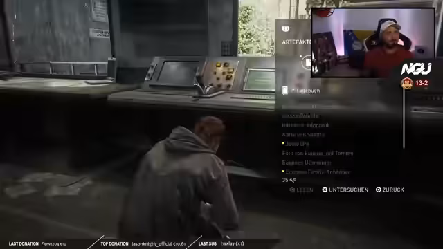 03:40:06Der Streamer beginnt mit 'The Last of Us Teil 2' und reagiert auf die Traurigkeit nach Joels Tod, die er im Stream vorigen Tag erlebt hat. Er beschreibt, wie Joel von Abby erschossen wurde, und wie Ellie und Tommy reagierten. Er erklärt, dass er die Trauer in Wut umwandeln will und Jagd auf Abys Gruppe macht. Er fordert die Zuschauer auf, bei der emotionalen Geschichte mitzudenken und unterstützt zu werden, während er durch die Stadt Seattle navigiert und lootet.