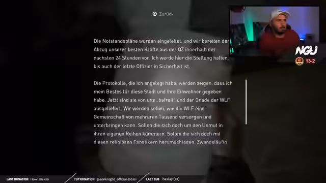 06:54:07Nach einem ereignisreichen Tag, der viel Zeit für Erkundung und Kämpfe erforderte, entscheidet sich der Streamer, an dem ungelösten Tresor zu pausieren. Er plant, den Tresor am nächsten Tag erneut in Angriff zu nehmen und sich dann auf die nächsten Story-Elemente zu konzentrieren, insbesondere auf den Ort 'Names Prince'. Der Streamer dankt seinen Zuschauern für das Mitfiebern und gibt bekannt, dass der Stream am nächsten Abend fortgesetzt wird, entweder um 18 Uhr oder spätestens um 19:30 Uhr.