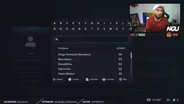03:10:28Der Streamer kündigt das nächste 'Schlag den Mirza'-Turnier für nächsten Donnerstag an, bei dem 75 Euro auf dem Spiel stehen. Er erklärt, dass wenn er gewinnt, der Pot auf 100 steigen würde. Er erwähnt sein persönliches Ziel in FC 26, mit der bosnischen Nationalmannschaft 15:0 bis zur WM zu erreichen, und zeigt seine Taktik dafür. Zudem erklärt er, wie die Auslosung für die Turniere auf Twitch funktioniert und wie sich die Community dafür anmelden kann.