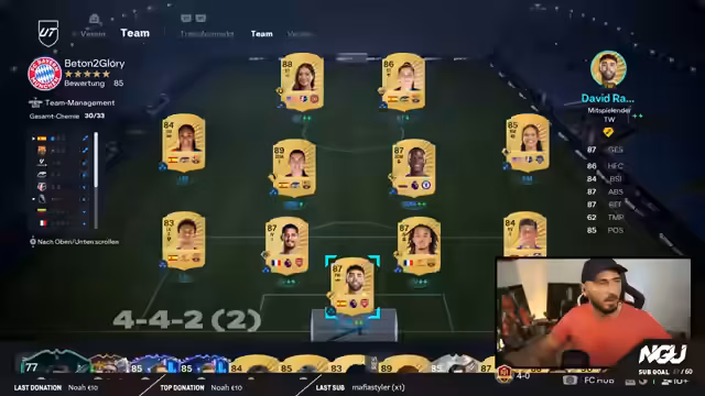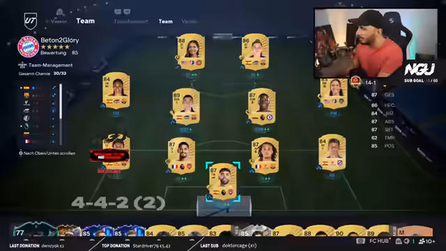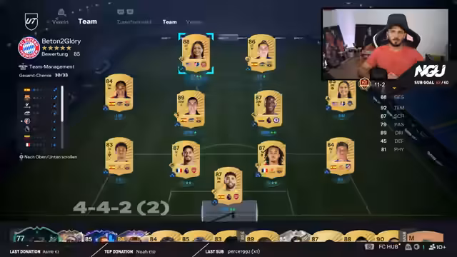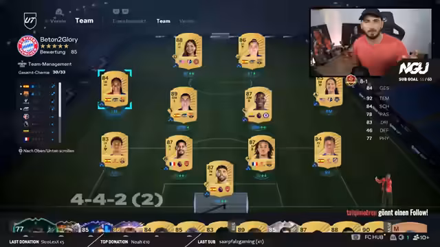 00:08:05Der Stream beginnt mit einer herzlichen Begrüßung der Zuschauer, einschließlich einer langen Liste von Gästen und Mods. Es wird über den gestrigen Erfolg berichtet: 14 Siege mit einem RTG-Account (14-1), was als außergewöhnliche Leistung gewertet wird. Der Fokus liegt auf dem heutigen Grind mit einem deutlich stärkeren Main Account, dessen Offensive mit Spielern wie Sophia Wilson, Pina, Paraluejo und Rodman vorgestellt wird. Die Defensive wird als hochwertig beschrieben, was die Erwartungen für die Weekend League steigert und die Frage aufwirft, was die Gegner gegen dieses Team und die NGU-Army tun können.