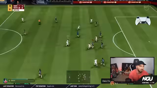 02:49:47Der Streamer reflektiert über Spielmuster und stellt fest, dass er in der 4-4-2-Formation zu oft auf den Flügel ausweicht und seltener durch die Mitte kombiniert. Er erklärt, dass ein direkterer Spielstil über die Mitte oft effektiver ist, da Gegner diesen oft nicht gut verteidigen können. Dies wird mit der 4-2-3-1-Formation in Verbindung gebracht, die mehr Räume für Angriffskombinationen bietet. Der Streamer betont die Wichtigkeit, Skill-Moves und Spielerbewegungen wie L1-Dreieck-Pässe zu nutzen, um gefährlicher im Strafraum zu werden.