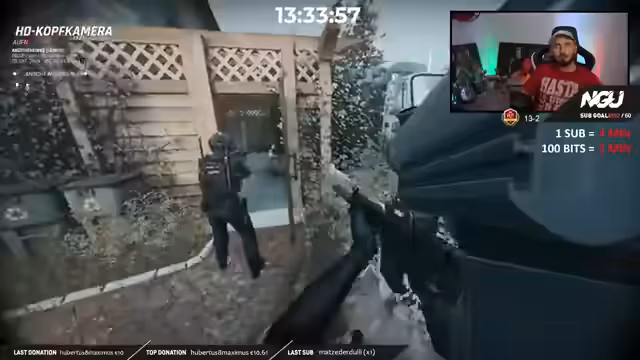 08:47:16Das Team betritt die Villa und beginnt mit der taktischen Durchsuchung. Sie stoßen auf verdächtige Gegenstände wie Pornotrophäen und ein Fernglas, was auf krumme Geschichten hindeutet. Sie müssen verdächtige Personen und Sicherheitskräfte neutralisieren, wobei die Lage oft unübersichtlich wird. Der Streamer beschreibt, wie sie verdächtige Personen überwältigen und sie in Gewahrsam nehmen, während sie gleichzeitig auf der Hut vor Hinterhalten sein müssen.