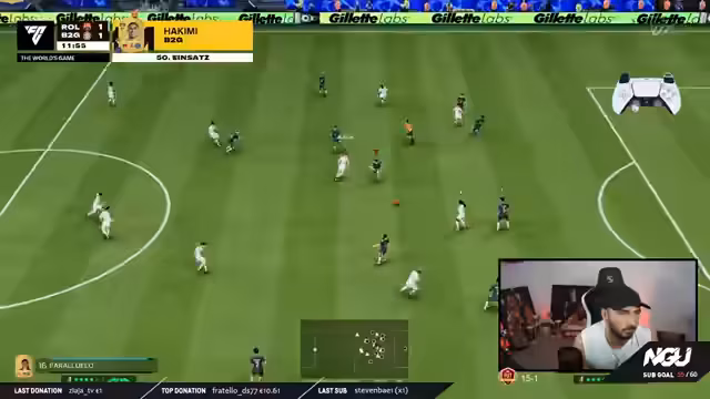 03:00:01Der Streamer verfolgt das Ziel, auf seinem Road-to-Gly-Account spezifische Wins zu erreichen, wobei die Prio auf der Silver Cup Mission liegt. Nach einigen Schwierigkeiten in den Spielen, die teilweise in Verlängerung endeten oder verloren gingen, folgte durch den Austausch mehrerer Spieler eine signifikante Verbesserung der Teamleistung. Das derzeitige Squad wird als funktional und ausreichend stark angesehen, um die verbleibenden Siege zu holen und Cup- sowie Divisionsziele zu erreichen.