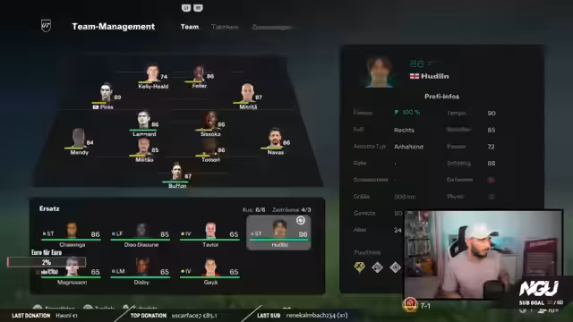 01:59:14Ein zentraler Aspekt des Streams ist die Betonung mentaler Konzentration. Streamer betont, dass voller Fokus für jede einzelne Partie unerlässlich ist, um das Beste herauszuholen. Er rät zur Deaktivierung von Ablenkungen und stellt eine 4-2-2-2 Taktik als seine Grundlage vor, die auf Ballbesitz ausgelegt ist. Diese Taktik stößt jedoch auf die Herausforderung des Cups-Formats, das nur zwei kurze Angriffe pro Spiel erlaubt und somit eine schnelle, risikoreichere Spielweise erfordert, die nicht seinem Stil entspricht.