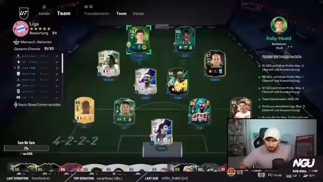 03:56:51Da der Streamer den Hadlin keine 99 Dribbling-Evo geben kann, zeigt er eine Alternative auf: Thomas Chory. Er präsentiert Silberkarte des Stürmers, die bereits auf 88 boosted wurde und mit einem Fantasy Kapitän Evo auf 90 evolutioniert werden kann. Ziel ist es, Chory mit 99 Dribbling, Aerial Plus und anderen starken Attributen zu einer Art Wundersturmertypen aufzubauen.
