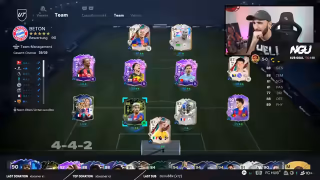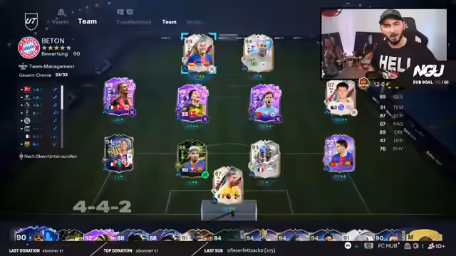 01:41:39Ein zentrales Thema ist die besondere Nervosität und der Druck, der mit dem zehnten Spiel in der Weekend League einhergeht. Der Streamer hat bereits mehrfach in dieser Situation Punkte verschenkt. Während des Spiels beobachtet er und beschreibt einen wiederkehrenden Bug im Spiel, bei dem seine Mitspieler in der 4-4-2-Formation nicht gestaffelt agieren, was sein Aufbauspiel erheblich erschwert und ihn anfällig für gegnerischen Druck macht.
