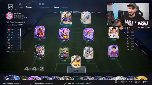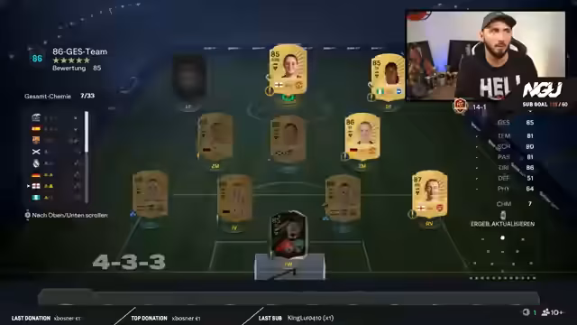 00:24:45Der Streamer tauscht sich mit dem Chat über aktuelle FIFA-Themen aus. Es geht um neue 90er-Packs, deren Wert und die Stärke bestimmter Spieler. Er gibt spezifische Tipps zu bestimmten Spielern wie Matthäus und Heuer, welche Playstyles und Chemie-Typen ihnen am besten stehen. Im Fokus stehen auch Tipps für Spielzüge und Teamzusammenstellungen, um im Weekend-League-Modus erfolgreich zu sein.